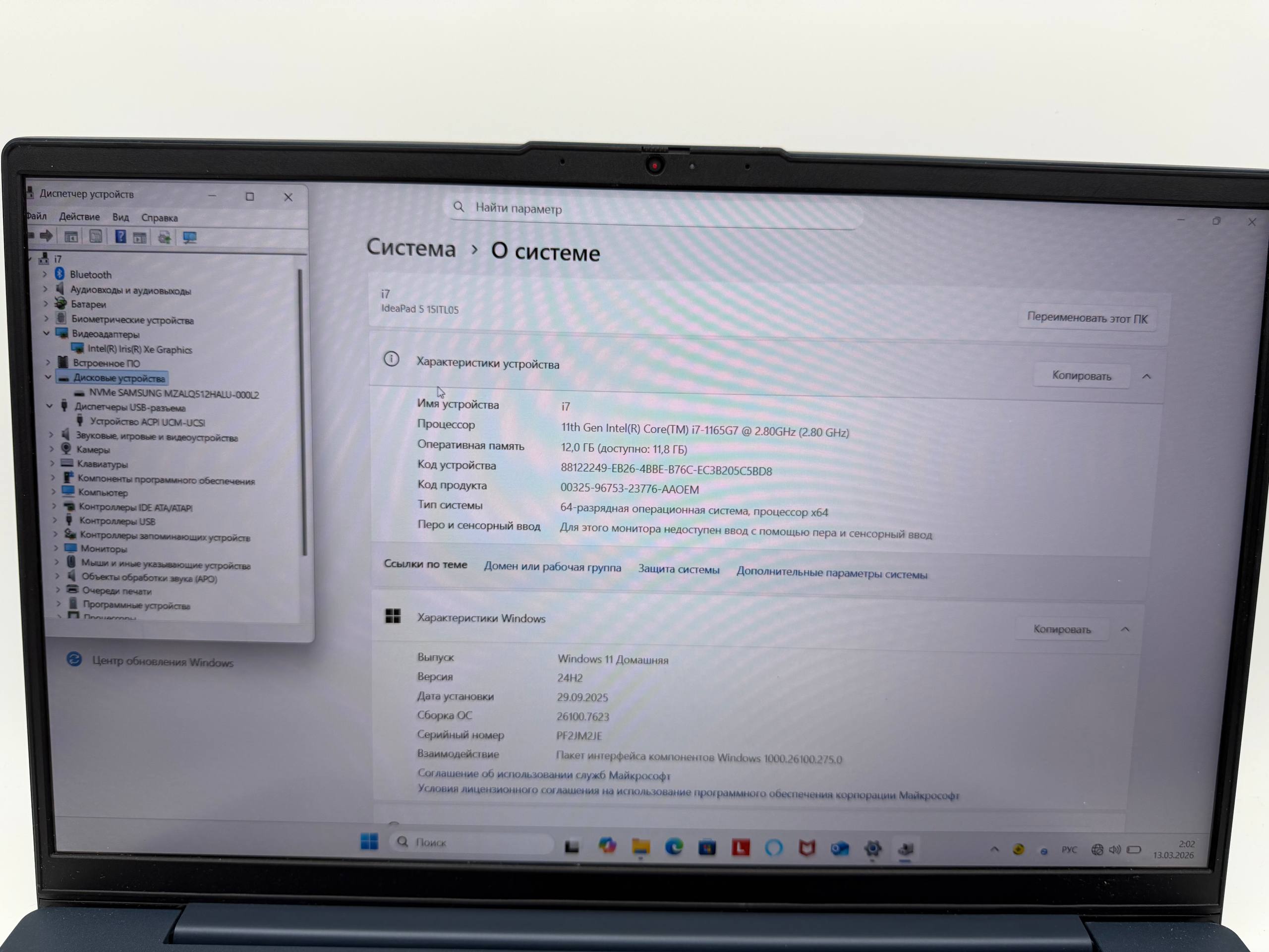 Lenovo IdeaPad 5 15ITL05 Intel(R) Core(TM) i7-1165G7 @ 2.80GHz